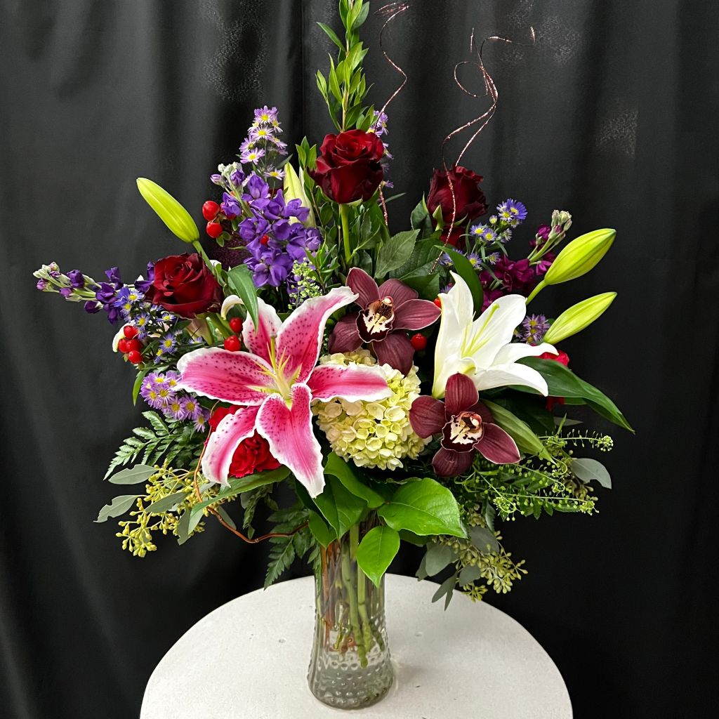 To guarantee the freshest bouquet possible, we may replace some stems in your arrangement for color or flower variety. While we always do the best to match the picture shown, sometimes different vases may be used. Any substitution made will be similar to the original design and be of equal or greater value.